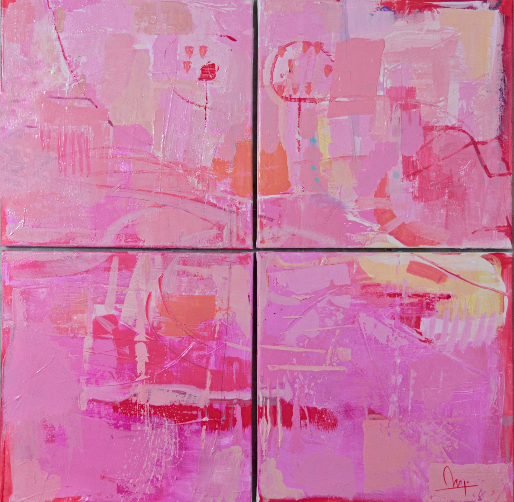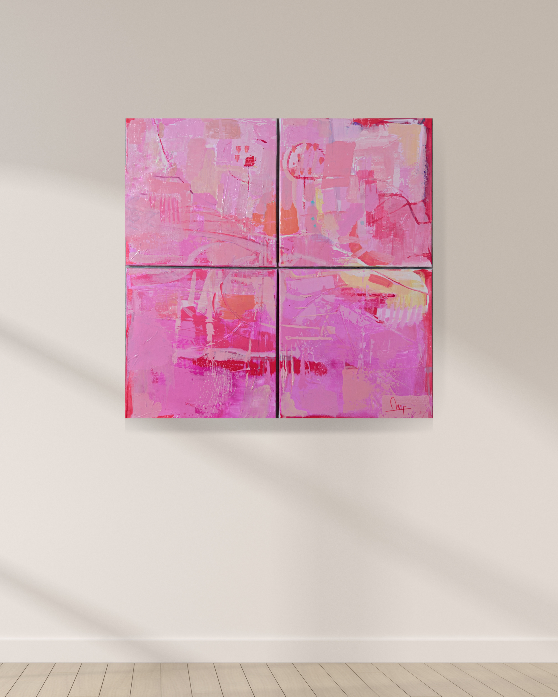 It is composed of four individual canvases that together form a single, unified artwork — a striking combination that enhances its presence in any space.