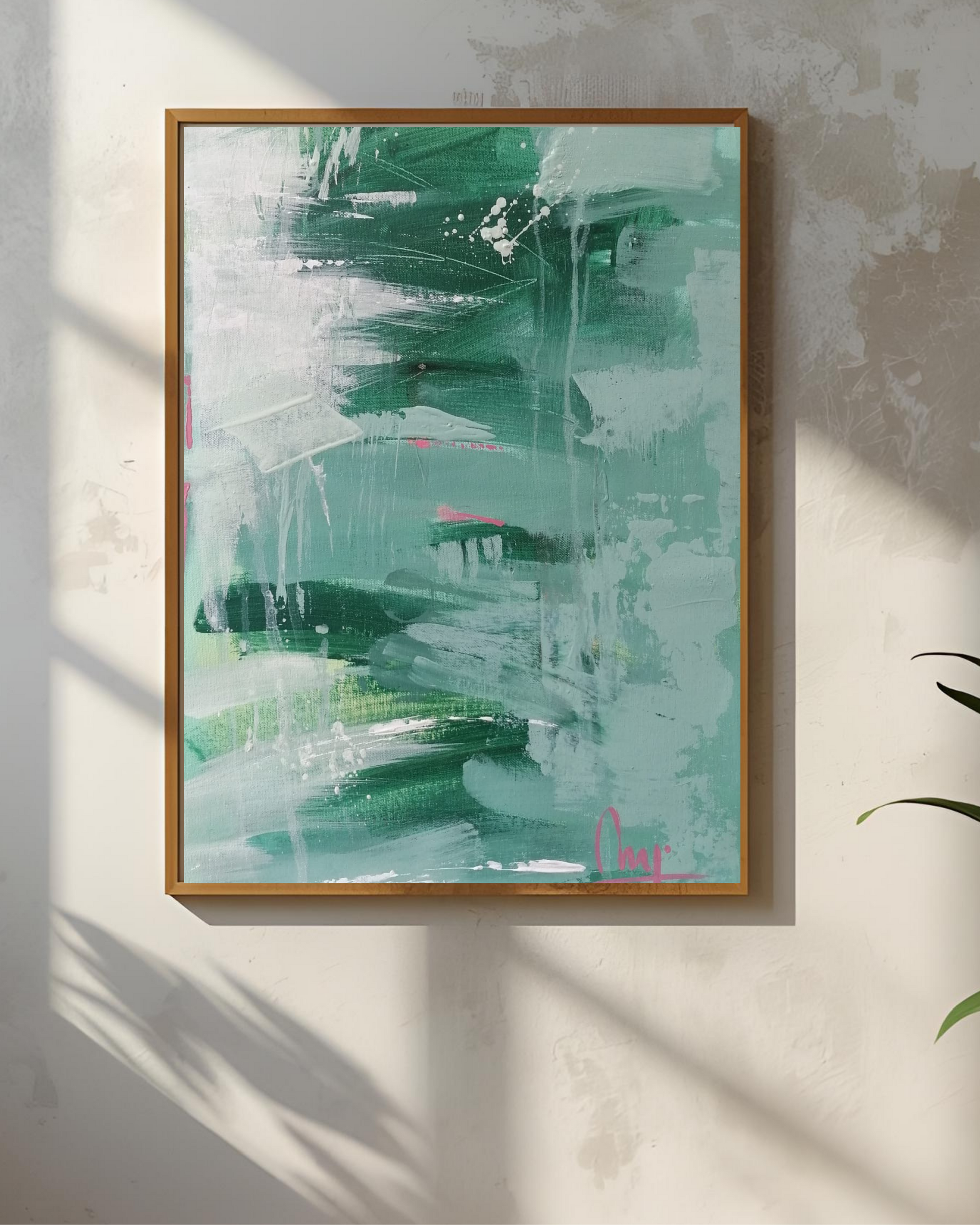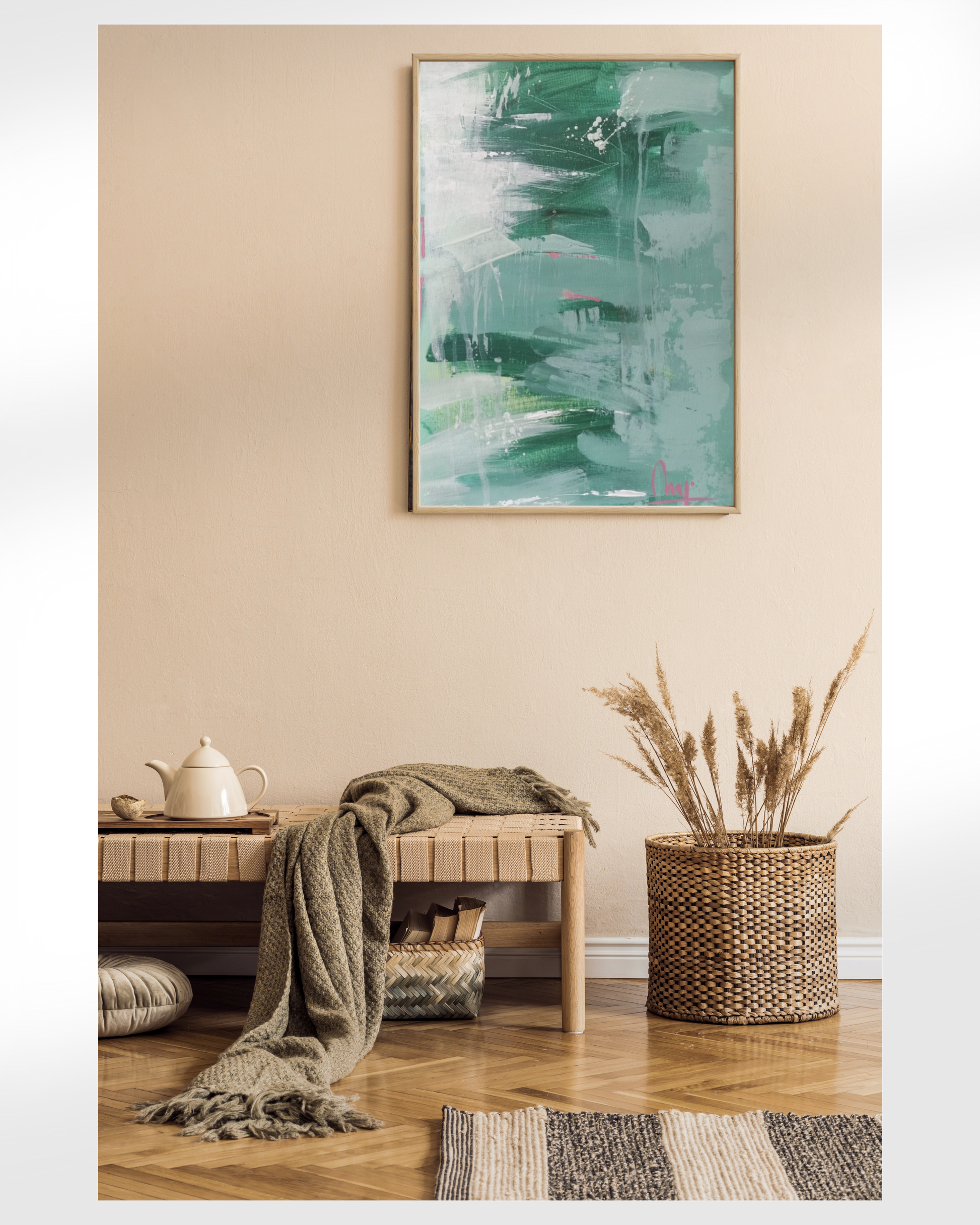 Abstract artwork in soft green tones that convey calm and depth. A serene and contemporary piece, ideal for bringing a touch of freshness to any space.