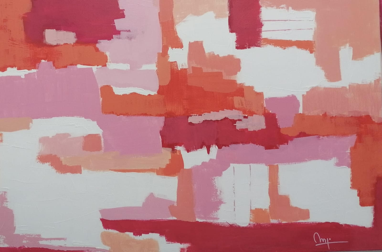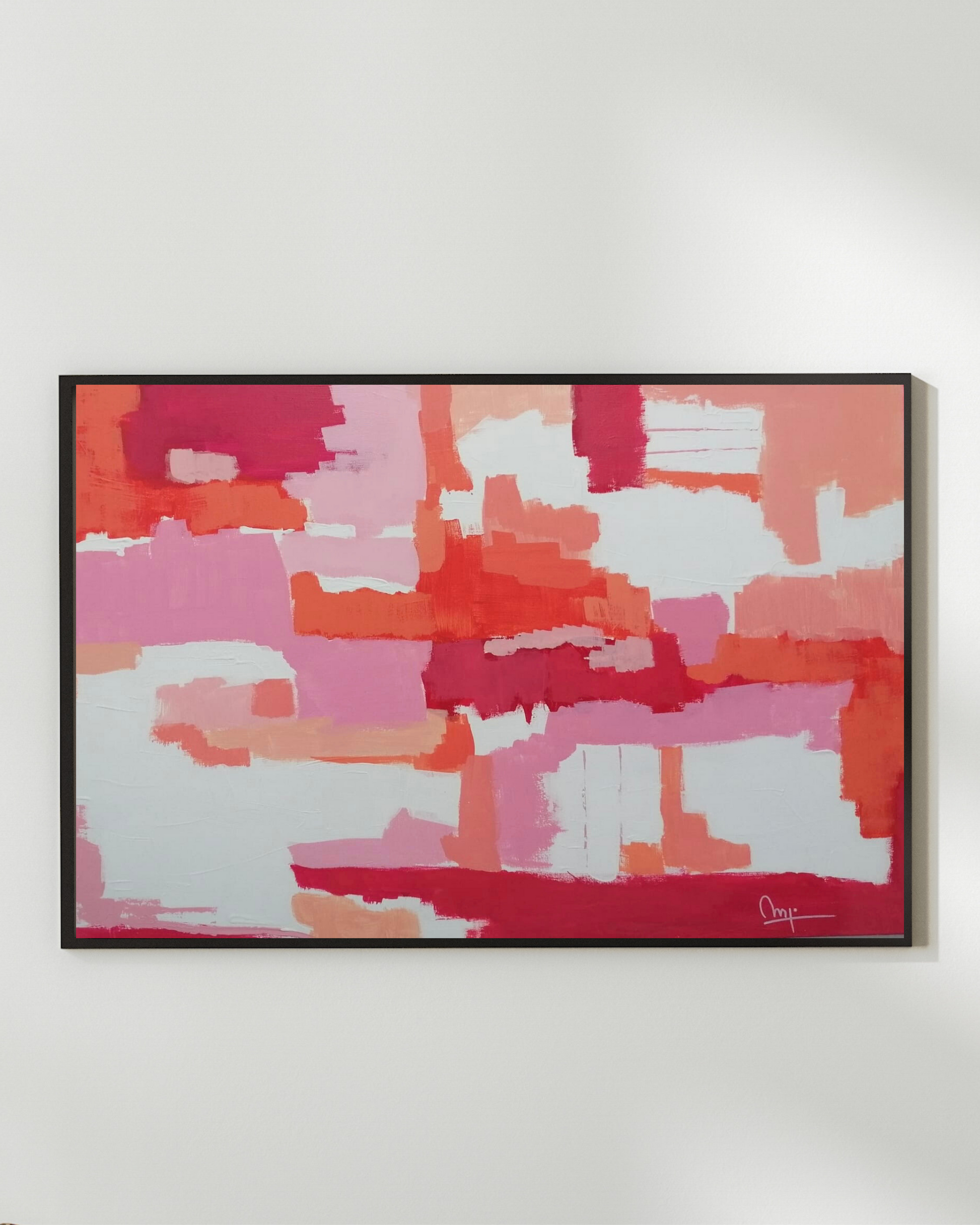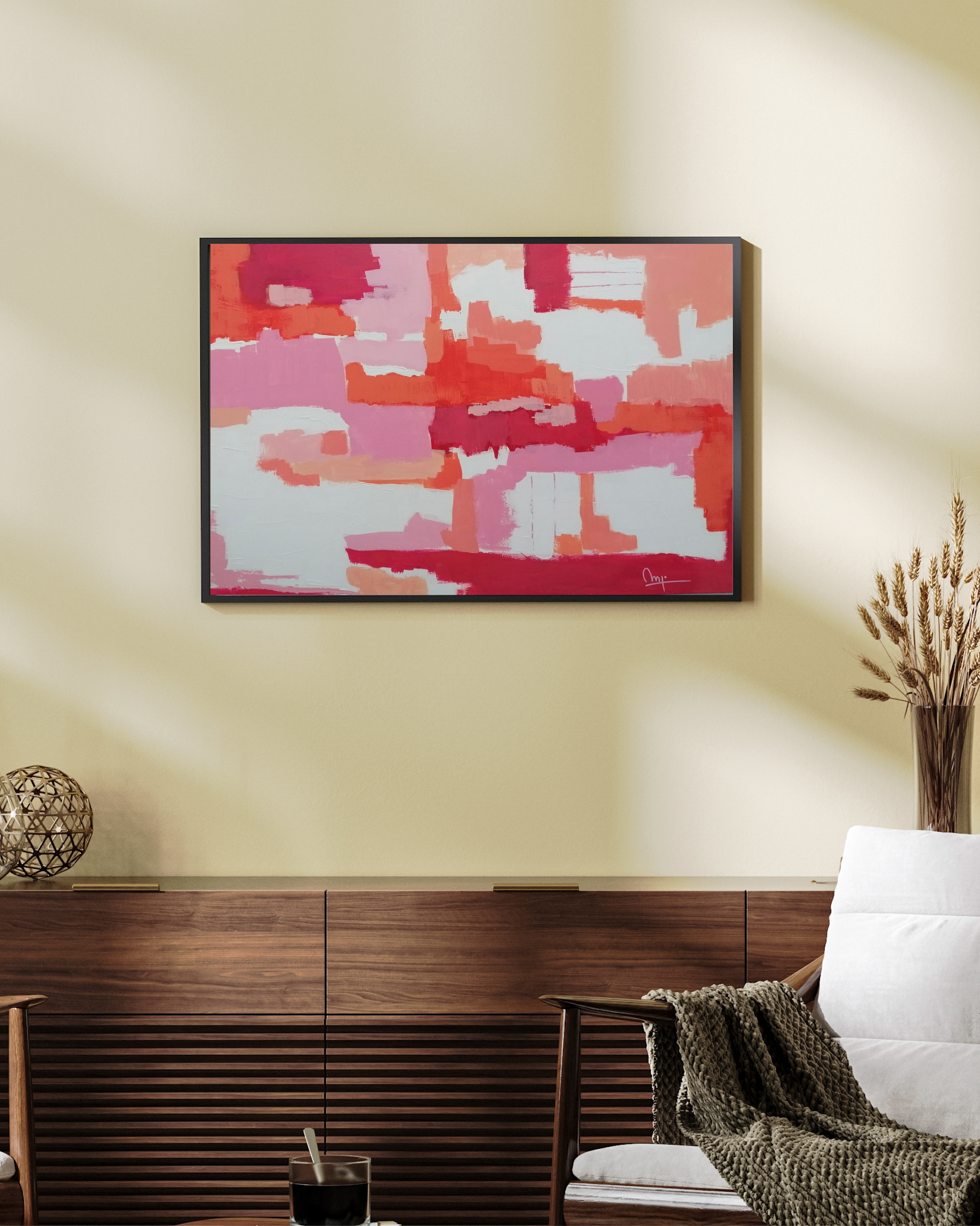 Obra abstracta en tonos cálidos que aporta equilibrio y carácter al espacio.